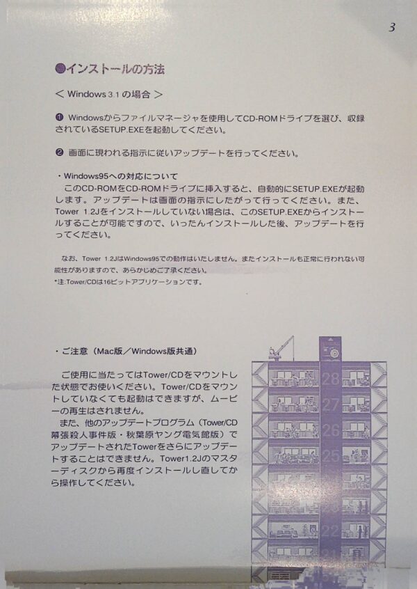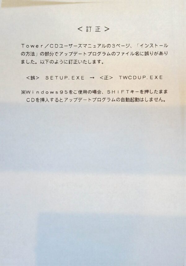 TOWER 1.2JをWin98SEにインストール。ここまでは問題なし。次にTOWER/CD Limited Editionをインストールするのだが、付属のFDから