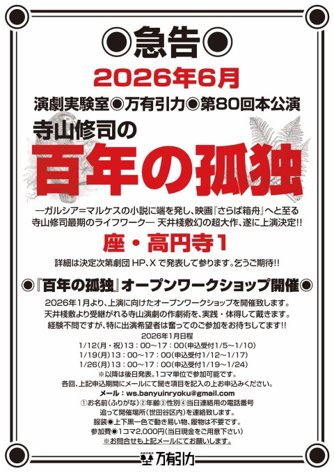 万有引力 百年の孤独 オープンワークショップ (2026)